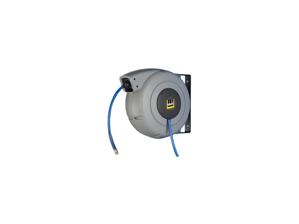 S hadicí na stl. vzduch z PU s textilní vložkou. Sériově s rychlospojkou a připojovací hadicí se vsuvkou. Sériově s pohyblivým přídržným třmenem a zařízením na zablokování hadice. Pro montáž na stěnu. Plastový kryt. Provozní tlak max. 15 bar při 20°C.