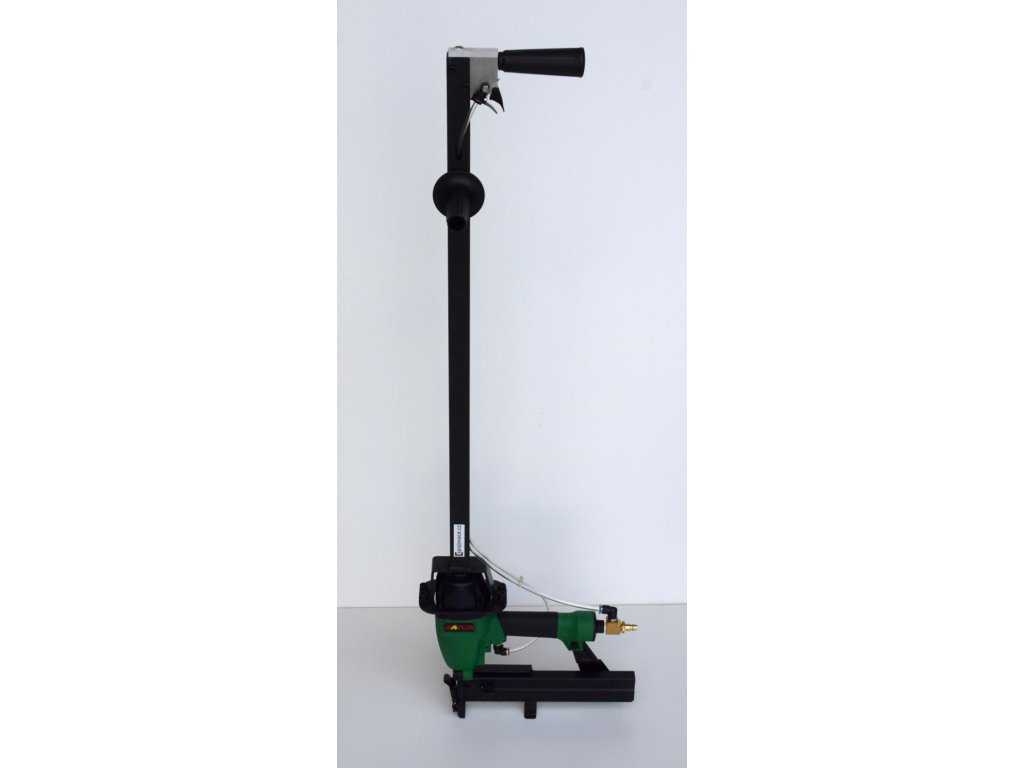 Pneumatická kartonážna sponkovačka s predĺženou rukoväťou na pripevňovanie materiálov k podkladu napr. lepenkových kartónových kontajnerov a prekladov k palete, fólií k paletám ak dreveným konštrukciám, pripevňovanie fólií k transportným klietkam, pripevňovanie papiera k paletám, pripevňovanie; sťahovacích pások k dreveným debnám. atď. Predĺžená rukoväť Vám zaistí doboru funkčnosť v hlbokých škatuliach pri práci v stoji.