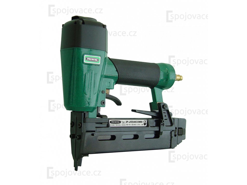 Kombinovaná nastreľovacia pištoľ 2P-J/ES40COMBI pre spony typu ES od 15 - 40 mm. Kontaktná poistka, kombinovaný zásobník, bez spätného rázu, tlmič hluku.