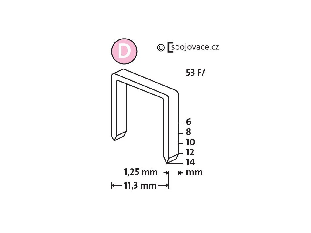 Spony Novus "D" typ 53F, dĺžka 12 mm, materiál zinkovaná oceľ.