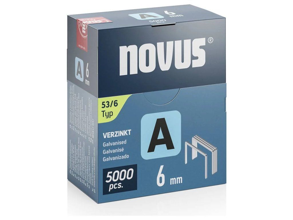 Spony Novus A typ 53, délka 6 mm, materiál zinkovaná ocel.